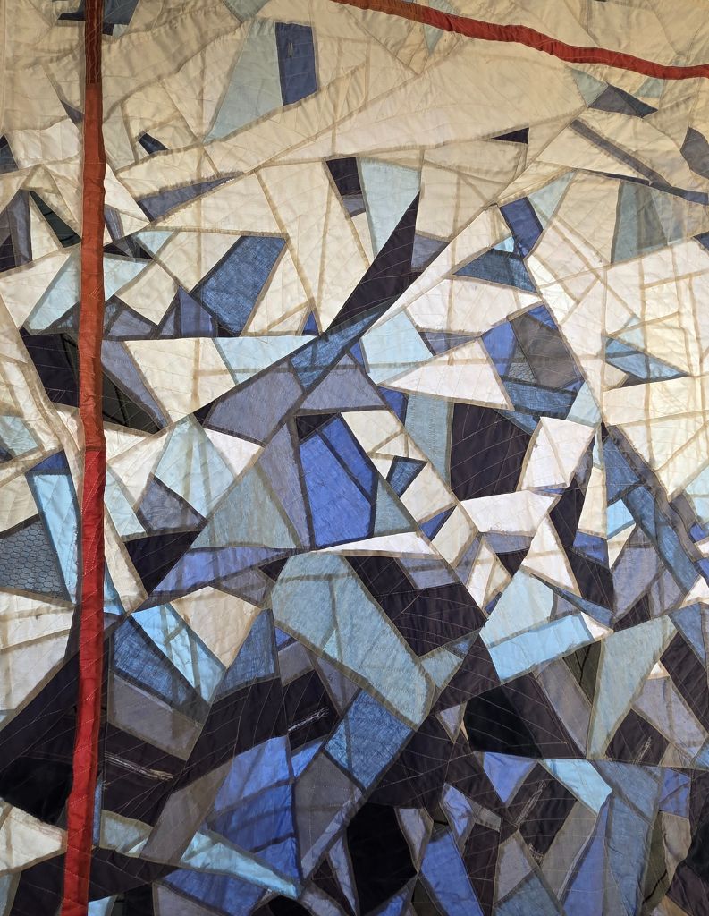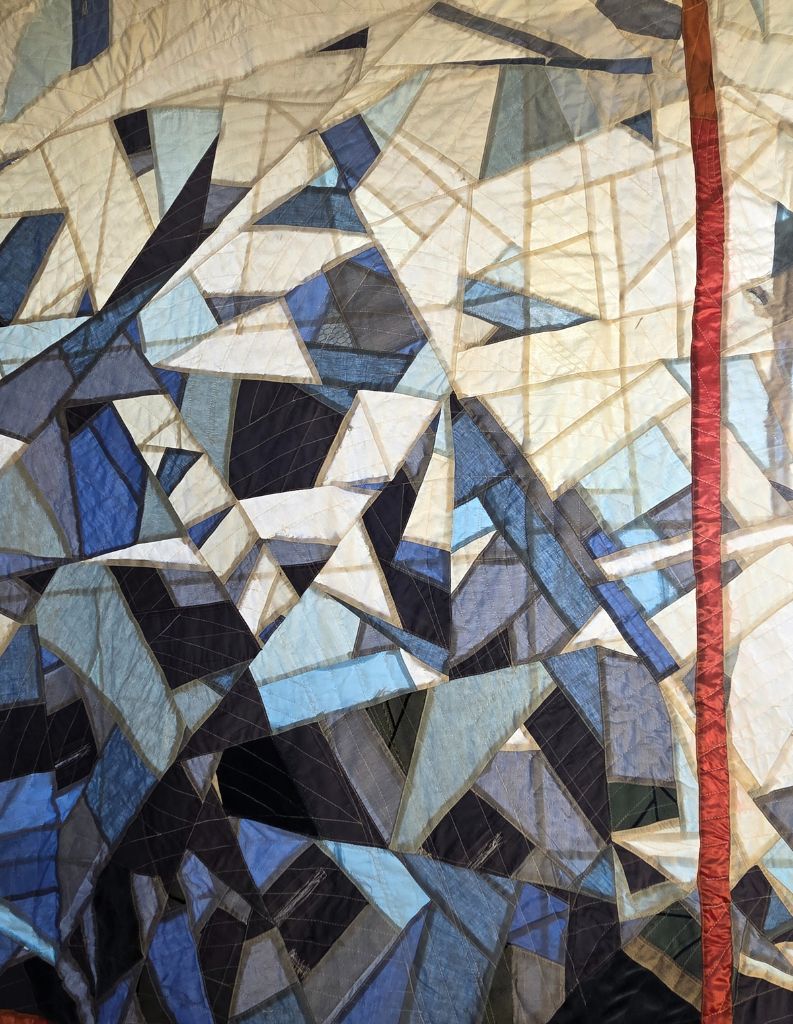 Machine pieced and quilted, made from repurposed fabrics